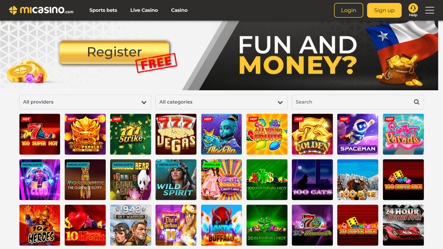 Respaldado por proveedores de software de primer nivel como Pragmatic Play, Advance, NetEnt y Hacksaw, MiCasino garantiza una experiencia de juego y una fiabilidad excepcionales.